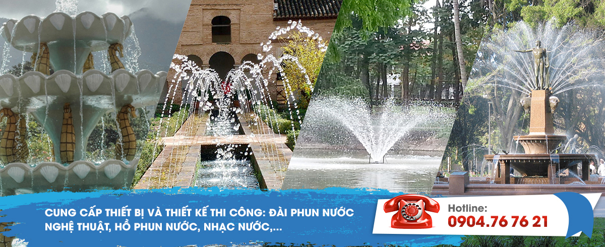 Chúng tôi là đơn vị có đội ngũ chuyên sâu về thiết kế, thi công, lắp đặt hệ thống đài phun nước, cung cấp thiết bị đài phun nước, máy bơm chìm, máy bơm nổi chuyên dụng cho hệ thống đài phun nước của các hãng nối tiếng trên thế giới, cung cấp vòi phun các loại, vòi phun tia, vòi phun sủi bột, vòi phun câu, vòi phun tạo hình, vòi phun nấm, vòi phun ba tầng, vòi phun cột áp cáo, vòi phun hình cây thông Noel, vòi phun sương,... cung cấp các loại đèn ngầm chuyên dụng, đèn LED ngầm trong bể, đèn LED âm nước, đèn lập trình các chế độ sáng, đèn halogen,...